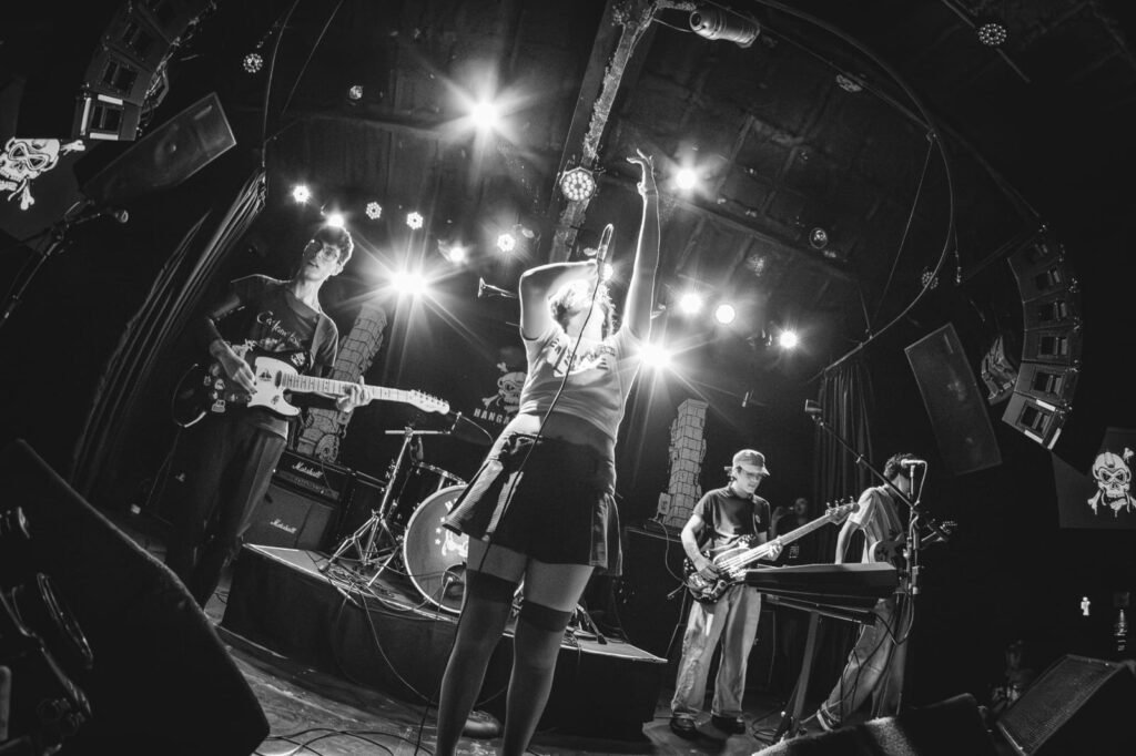 A ação só dava uma pausa quando o vocalista Jay Green parava para passar suas mensagens antifascistas, contra bilionários e de condenação à opressão. Em diversos momentos, ele também se posicionou nas laterais do palco para dar a mão ao público e ajudar pessoas a subir. Além disso, mostrou todo seu carisma ao puxar um leque com as cores da bandeira LGBT para se abanar do calor intenso dentro da casa – em contraste com o tempo do lado de fora.